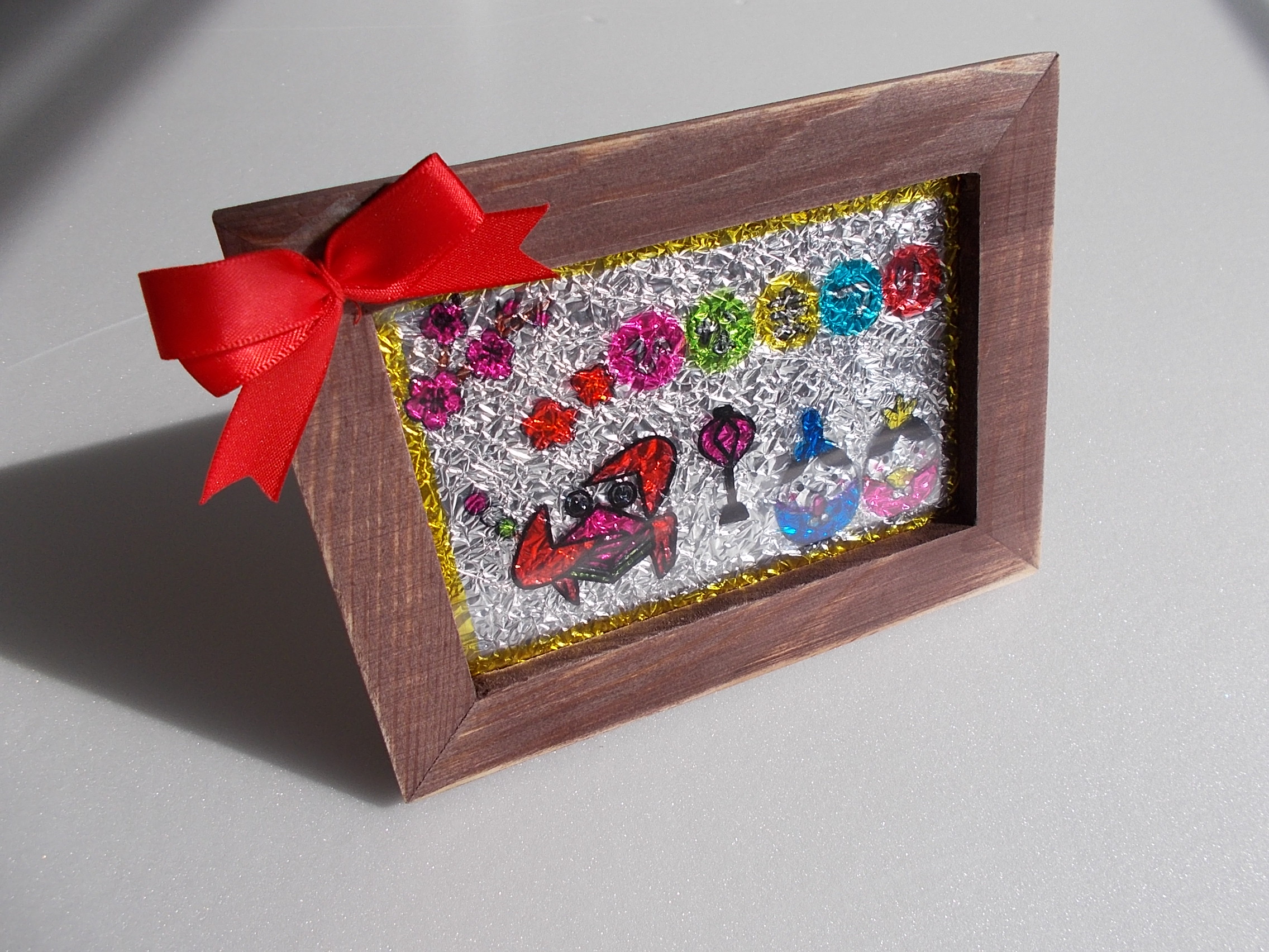 プラ板に絵をかいて、ステンドグラスを作ります。