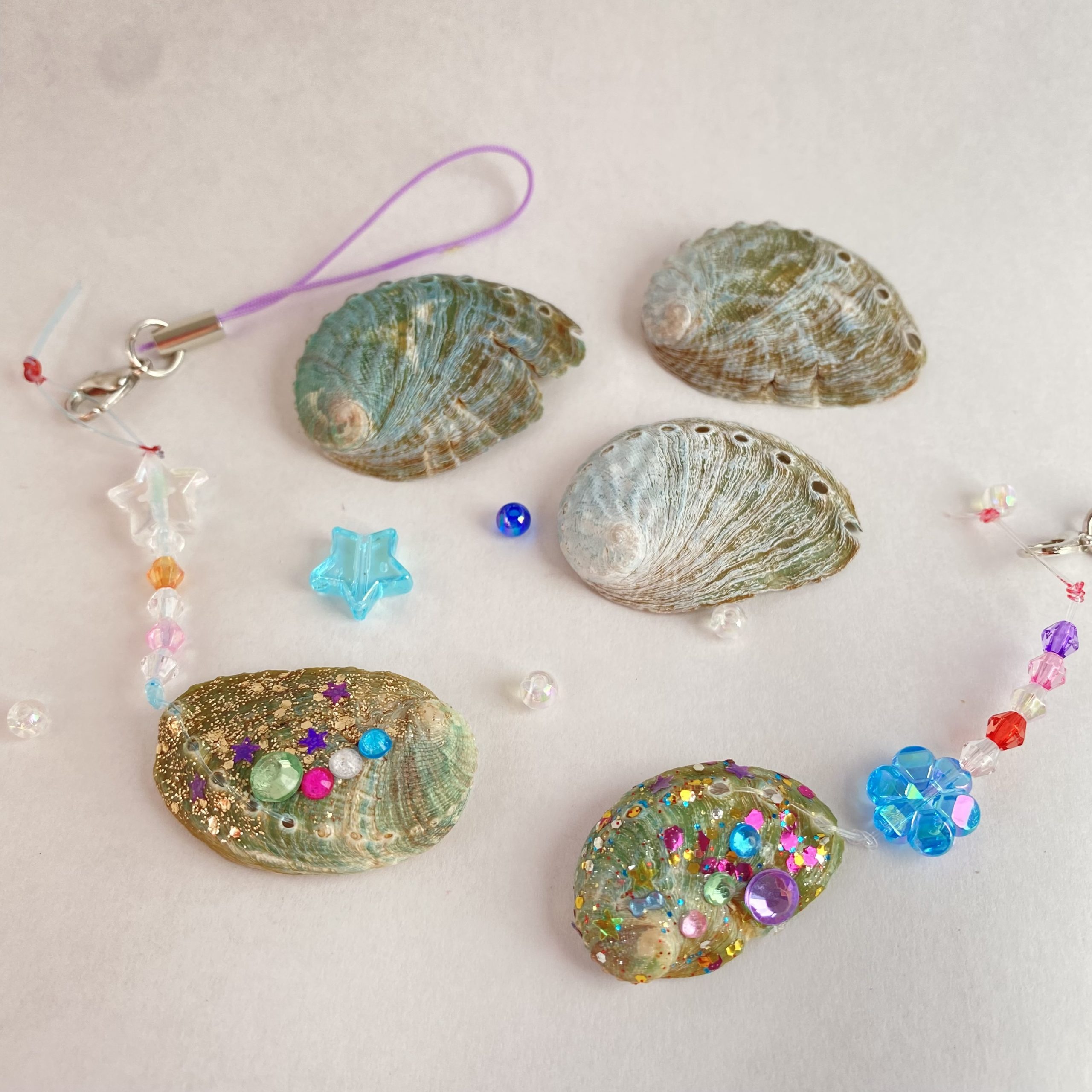 アワビの貝がらにマニキュアなどを塗ってストラップを作ります