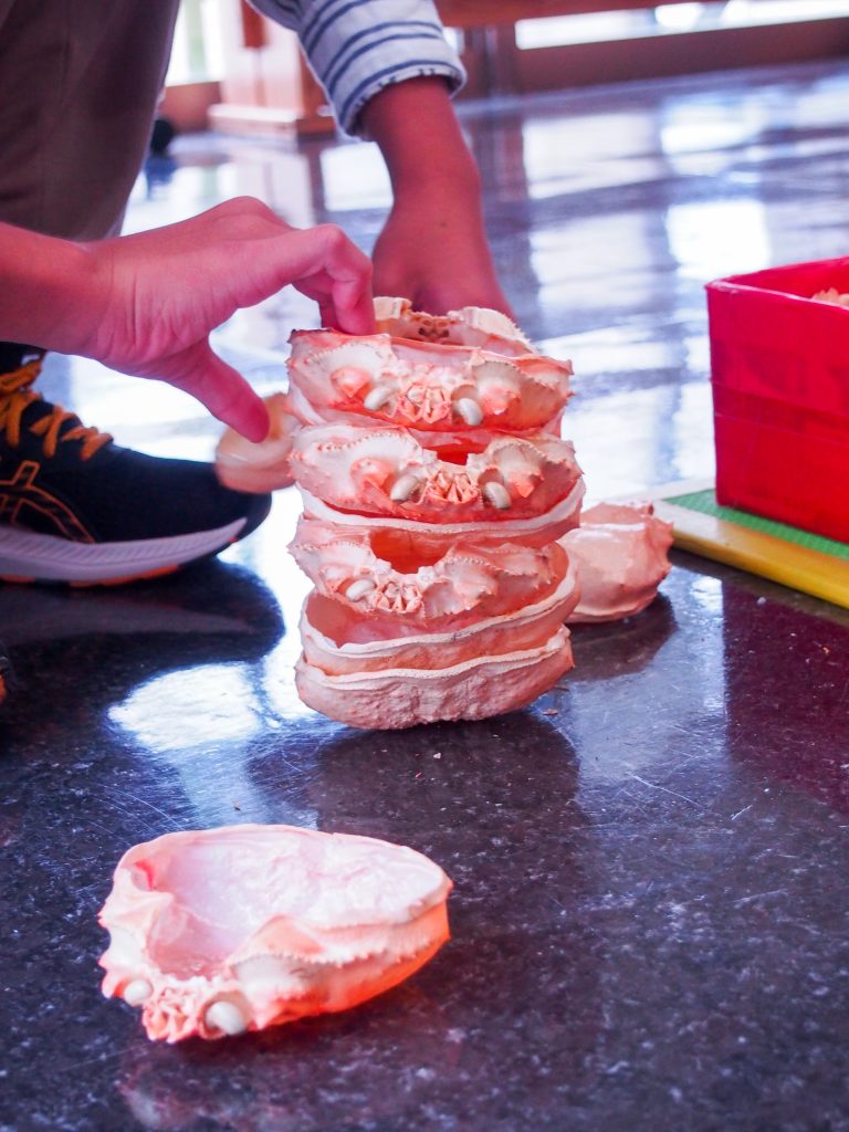 貝がらやシーグラスなどを選んでアクセサリーを作ります。