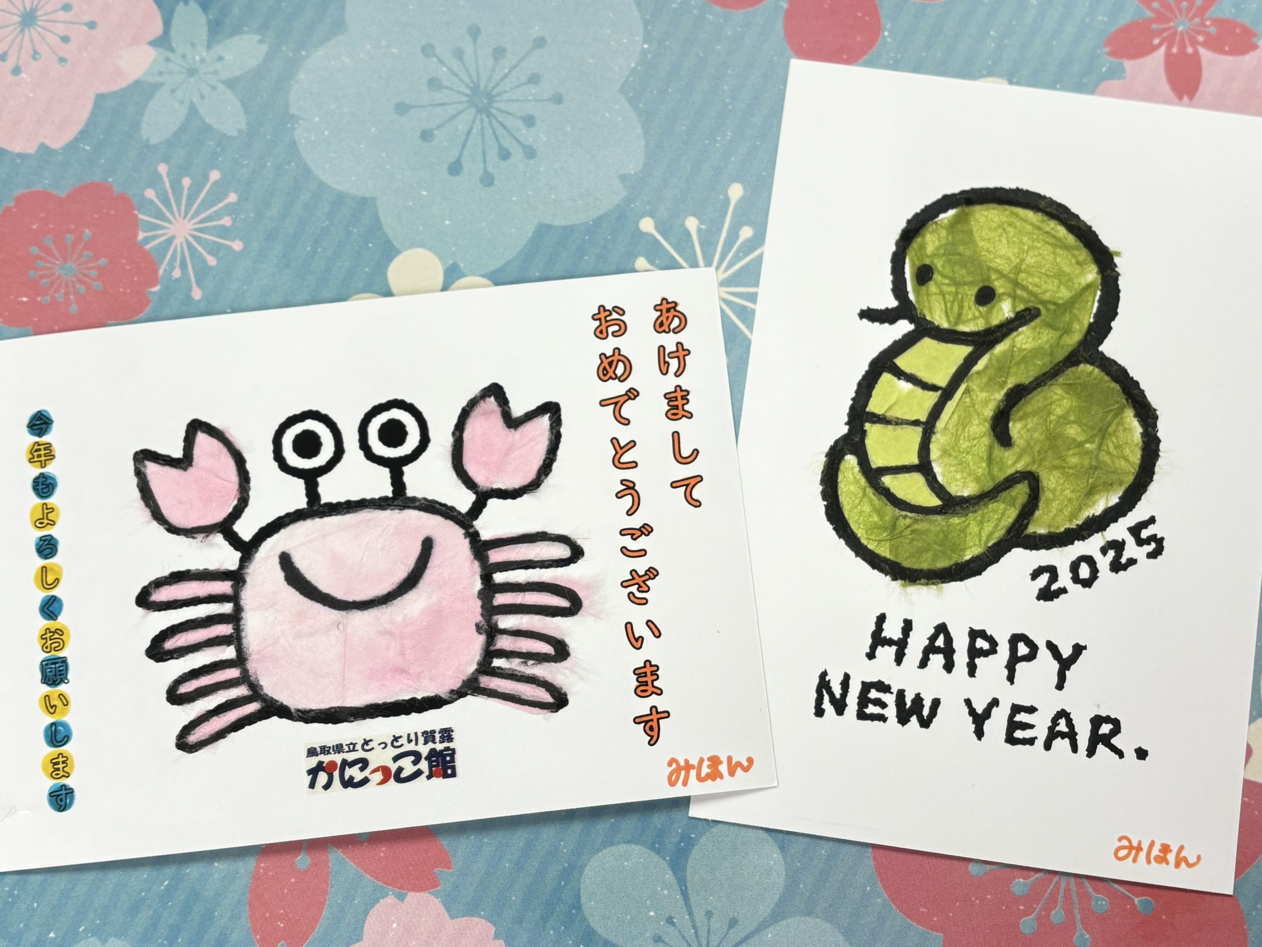 和紙の貼り絵で年賀状を作ります。好きな絵柄を選べます🐴🦀