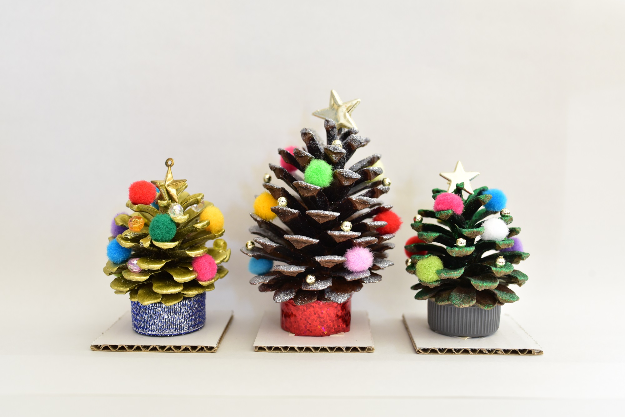 松ぼっくりに飾りをつけてクリスマスツリーを作ります🎄